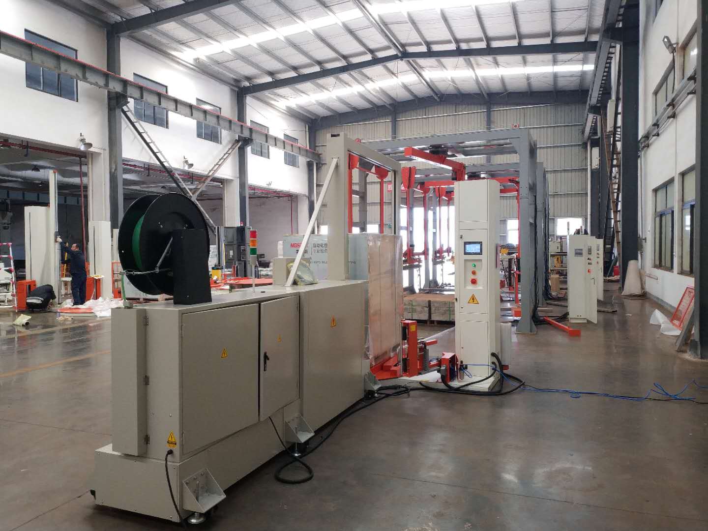 將托盤貨物放到纏繞機圓盤上后,按啟動鍵進行全自動打包(縱橫2條行程井字形,共計4條)打包好后進行托盤纏繞,自動纏繞包裝好后會有報警提示音人工用叉車下貨入庫完成整個流程。
