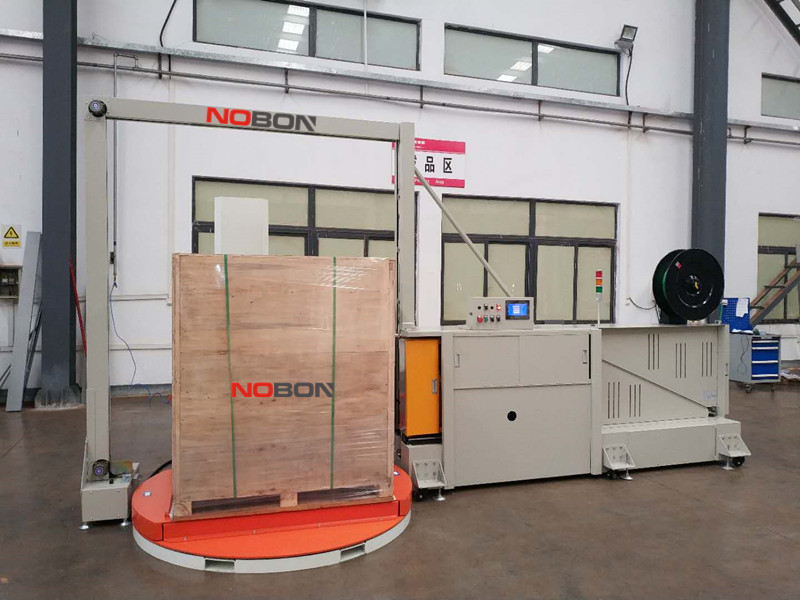 本機器為全自動纏繞機搭配全自動穿箭打包機實現打包一體機,配備遙控器遠程使用,全程只需要按一個啟動按鈕。